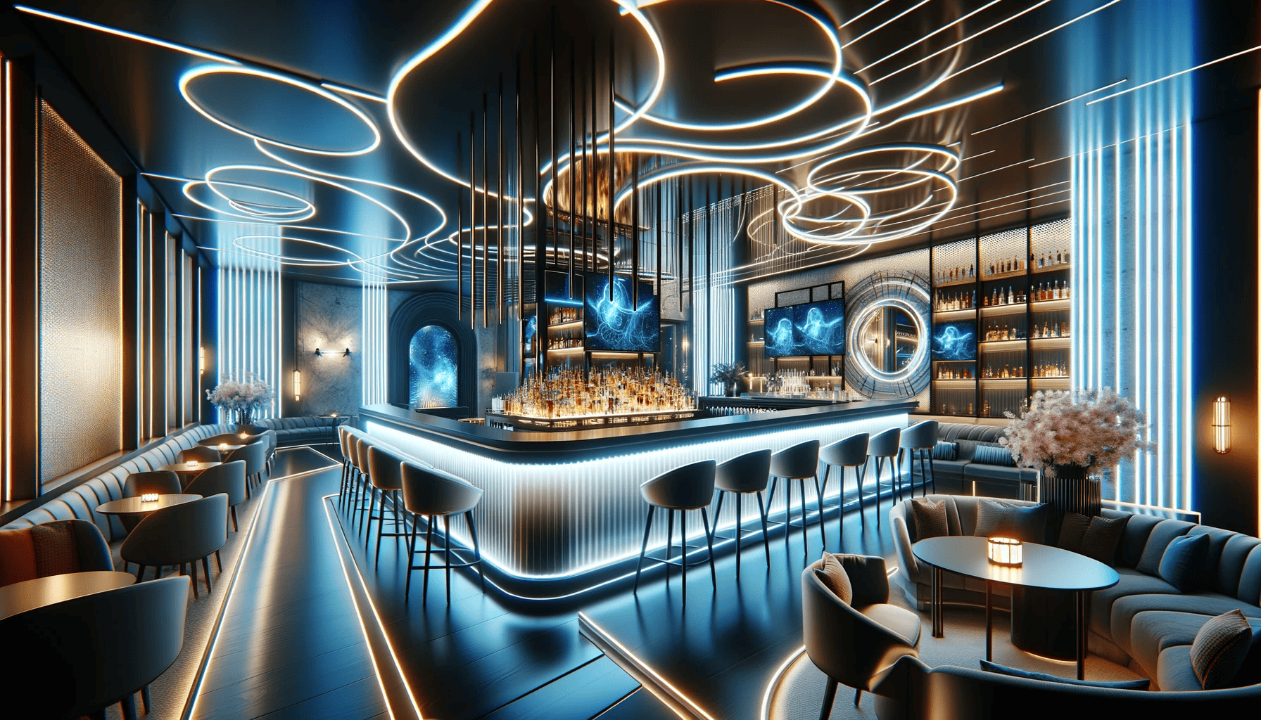 走进“梦幻之音”,首先映入眼帘的是那充满现代感与艺术气息的装修风格。墙面上挂着抽象派画作,柔和的灯光洒落在每一个角落,营造出一种温馨而又神秘的氛围。吧台后方,是一面巨大的LED屏幕,上面播放着各种音乐MV,让人仿佛置身于一个私人音乐会现场。